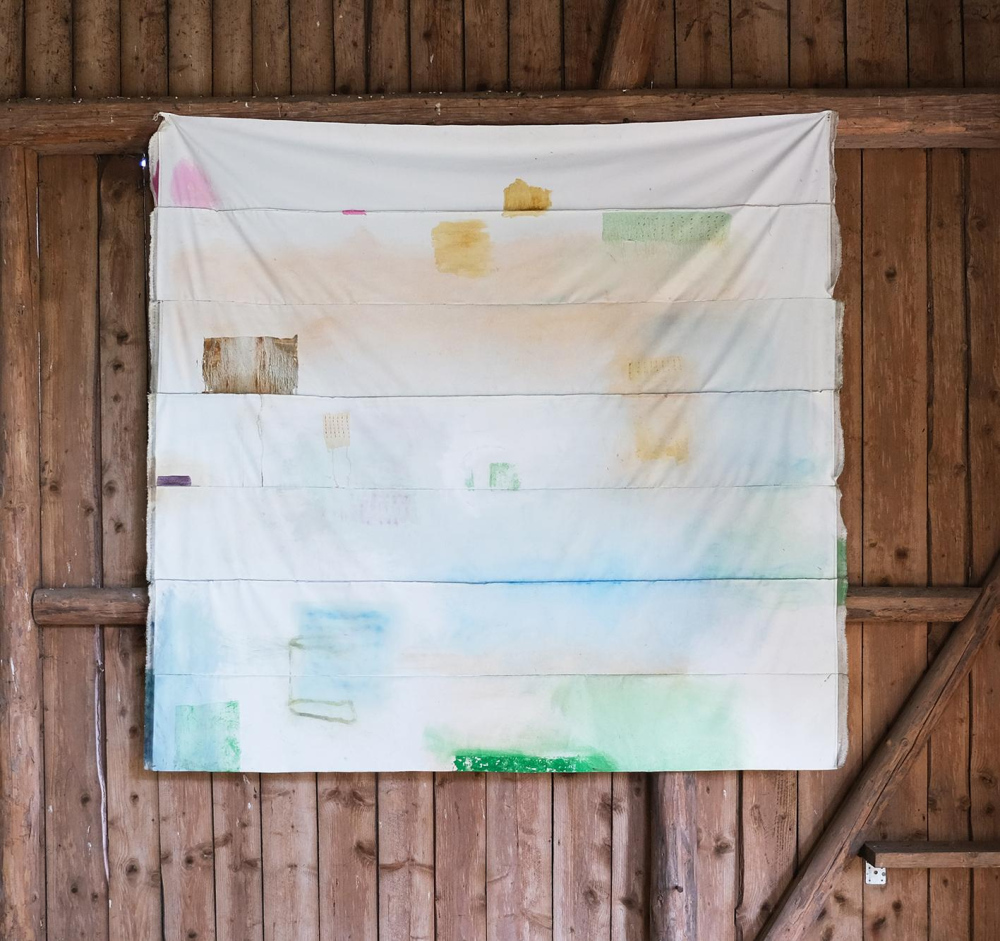 Oil on canvas and sewing thread